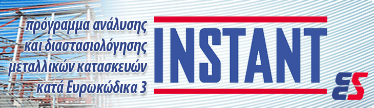 Το INSTANT της CCES είναι ένα πρόγραμμα ανάλυσης και διαστασιολόγησης κατά Ευρωκώδικα 3 τριδιάστατων μεταλλικών κατασκευών, εξοπλισμένο με πλήρες γραφικό περιβάλλον επικοινωνίας, φιλικότατο προς τον χρήστη.